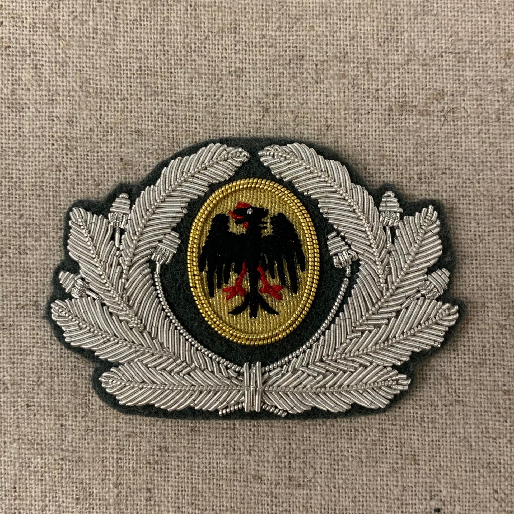 Hand embroidered first pattern wreath and Reichsheer eagle on Reseda wool backing.