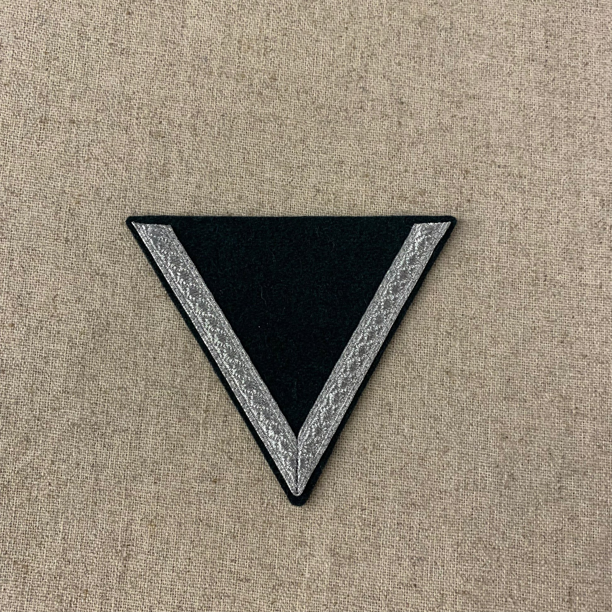 Heer type silver tresse on Bottle Green wool backing.