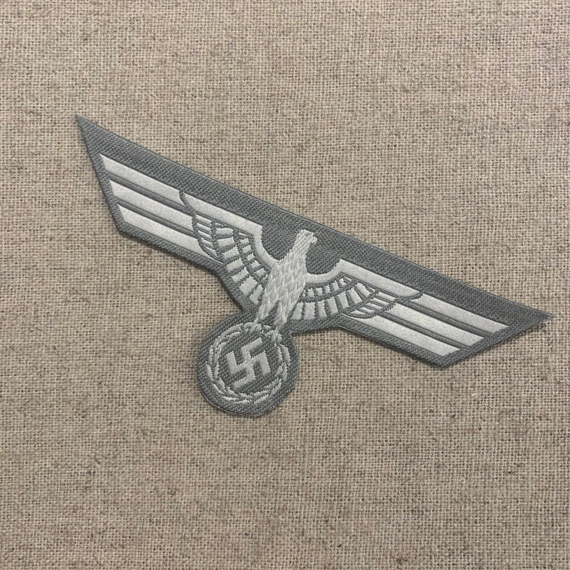 White eagle on light gray backing.