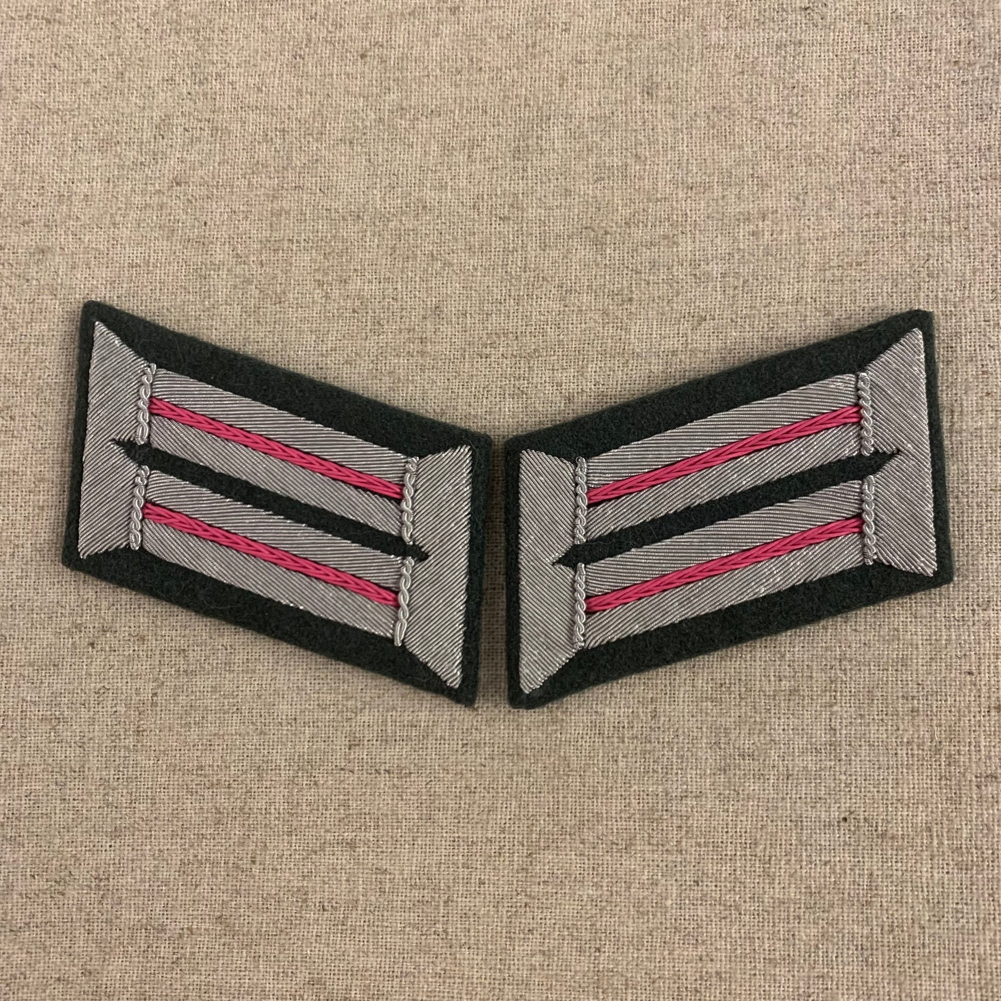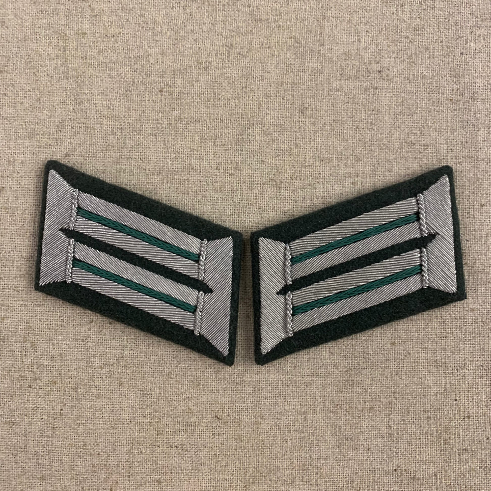 Hand embroidered bullion parts with bottle green backing, hand knitted 100% linen Waffenfarbe strips, the backing tabs are vintage German made 100% linen fabric also.