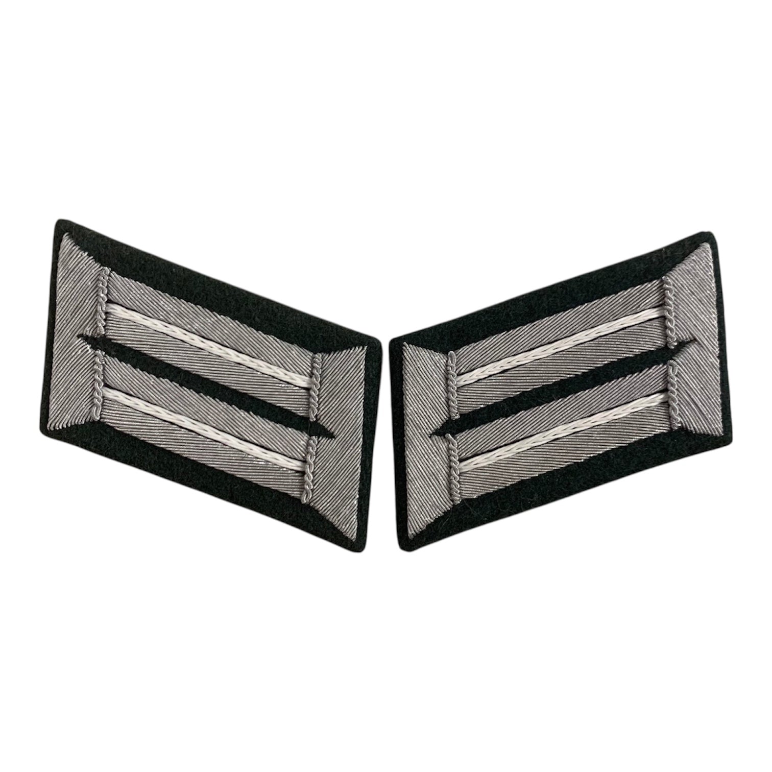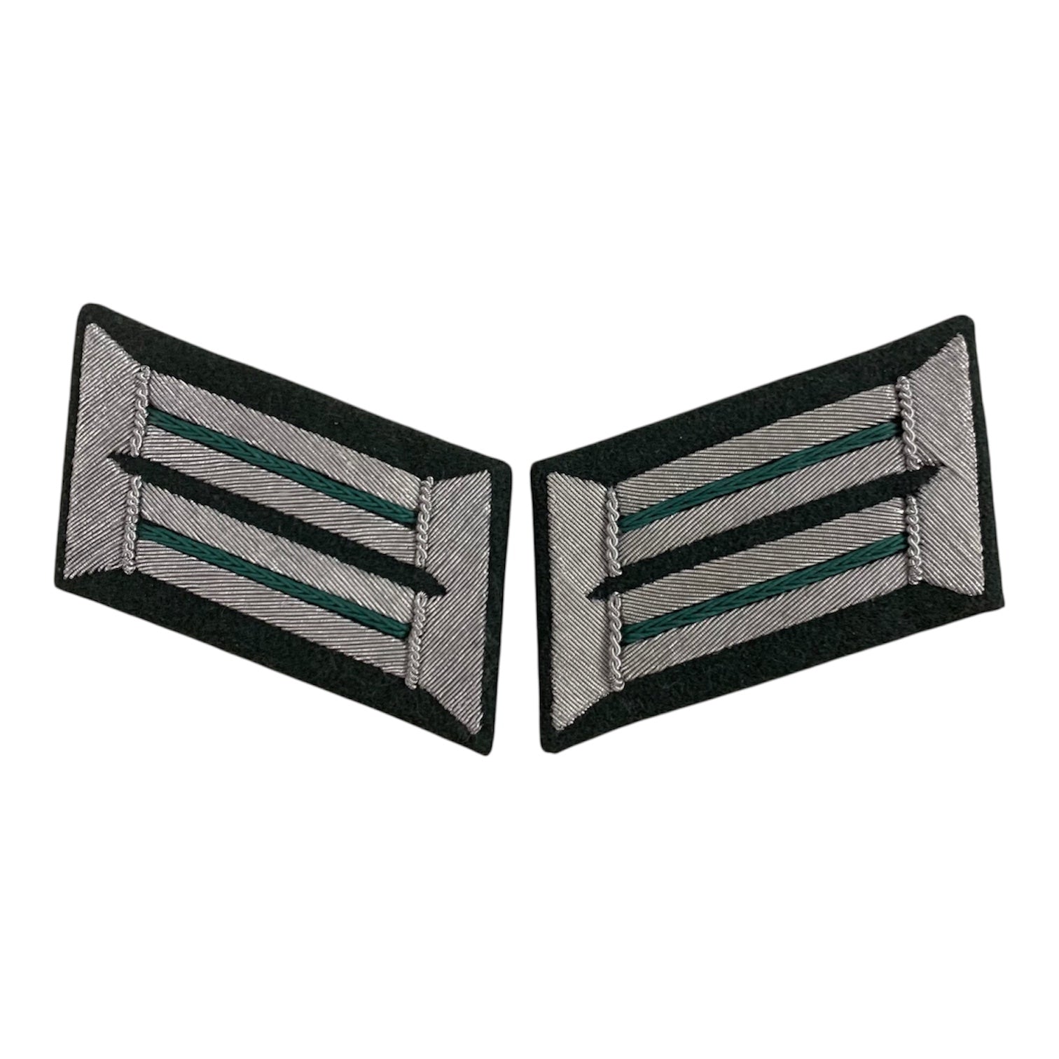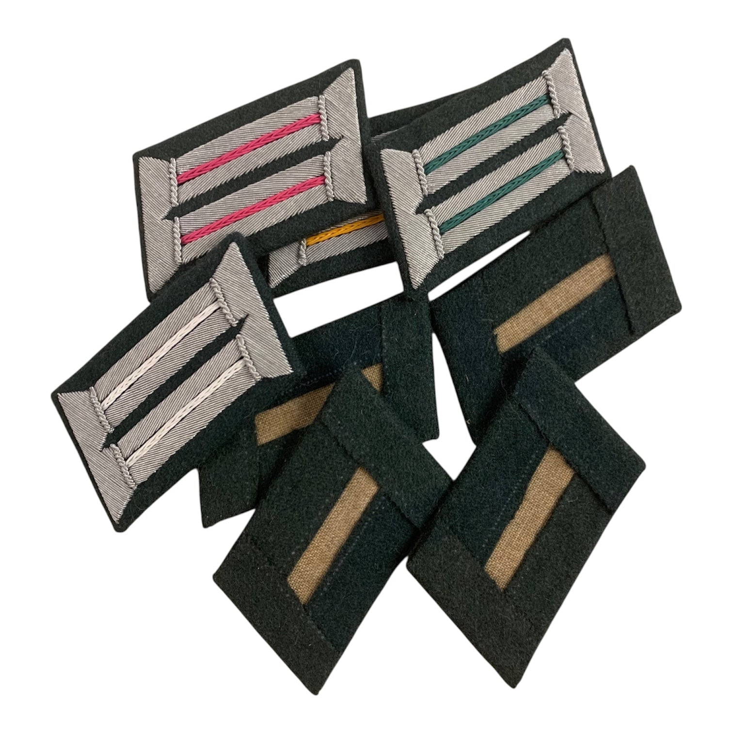 Hand embroidered bullion parts on bottle green backing, hand knitted 100% linen Waffenfarbe strips, the backing tabs are vintage German made 100% linen fabric also.